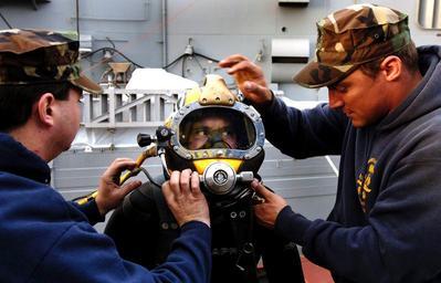| Keywords: US Navy 070104-N-9769P-024 Working directly with Southwest Regional Maintenance Center (SWRMC) divers, Senior Chief Mass Communication Specialist (diver) Andrew McKaskle is fitted with the MK-21 diving helmet before documenting.jpg en San Diego Jan 4 2007 - Working directly with Southwest Regional Maintenance Center SWRMC divers Senior Chief Mass Communication Specialist diver Andrew McKaskle is fitted with the MK-21 diving helmet before documenting a 13-ton fin stabilizer replacement aboard the Oliver Hazard Perry-class frigate USS McCluskey FFG 41 U S Navy photo by Mass Communication Specialist 2nd Class Jayme Pastoric RELEASED 2007-01-04 070104-N-9769P-024 Navy http //www navy mil/view_image asp id 42190 U S Navy photo by Mass Communication Specialist 2nd Class Jayme Pastoric PD-USGov-Military-Navy Naval Base San Diego in the 2000s USS McClusky FFG-41 MK-21 diving helmet Mass Communication Specialist |