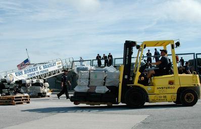| Keywords: US Navy 070105-N-5240C-018 Boatswain's Mate 1st Class David Malcolm of Naval Air Station (NAS) Key West use a forklift to transport a pallet of cocaine onto a waiting truck at the pier at NAS Key West.jpg en Key West Fla Jan 5 2007 - Boatswain's Mate 1st Class David Malcolm of Naval Air Station NAS Key West use a forklift to transport a pallet of cocaine onto a waiting truck at the pier at NAS Key West Sailors assigned to the guided missile frigate USS Robert G Bradley FFG 49 Coast Guardsmen and agents from the Drug Enforcement Agency unloaded the cocaine off the ship after a recent drug seizure Bradley was part of a multi-national and interagency effort to interdict the flow of narcotics into the United States U S Navy photo by Mass Communication Specialist 2nd Class Timothy Cox RELEASED 2007-01-05 070105-N-5240C-018 Navy http //www navy mil/view_image asp id 42067 U S Navy photo by Mass Communication Specialist 2nd Class Timothy Cox PD-USGov-Military-Navy Naval Air Station Key West USS Robert G Bradley FFG-49 |