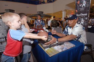 | Keywords: US Navy 070208-N-4965F-001 A young patron hands a football to Willie Brown, Hall of Fame cornerback for the Oakland Raiders, during an autograph signing session at the Pearl Harbor Navy Exchange.jpg en Pearl Harbor Hawaii Feb 8 2007 - A young patron hands a football to Willie Brown Hall of Fame cornerback for the Oakland Raiders during an autograph signing session at the Pearl Harbor Navy Exchange Brown is currently in Honolulu Hawaii for the 28th consecutive Pro Bowl at Aloha Stadium U S Navy photo by Mass Communication Specialist 1st Class James E Foehl RELEASED 2007-02-08 070208-N-4965F-001 Navy http //www navy mil/view_image asp id 42967 U S Navy photo by Mass Communication Specialist 1st Class James E Foehl PD-USGov-Military-Navy Mall at Pearl Harbor |