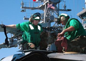 | Keywords: US Navy 070216-N-5822P-028 The multi-purpose amphibious assault ship and Expeditionary Strike Group Five are currently off the coast of Southern California participating in Composite Training Unit Exercise (COMPTUEX) in prepara.jpg en Pacific Ocean Feb 16 2007 - Aviation Structural Mechanic Airman Charlotte Zimmerman from Manchester Pa left and Aviation Machinist's Mate 1st Class Vincent E Negrini from Arcadin Calif perform preflight maintenance checks on a SH-60S Seahawk helicopter aboard USS Bonhomme Richard LHD 6 The multi-purpose amphibious assault ship and Expeditionary Strike Group Five are currently off the coast of Southern California participating in Composite Training Unit Exercise COMPTUEX in preparation for an upcoming deployment U S Navy photo by Mass Communication Specialist Seaman Mark Patterson II RELEASED 2007-02-16 070216-N-5822P-028 Navy http //www navy mil/view_image asp id 43301 U S Navy photo by Mass Communication Specialist Seaman Mark Patterson II PD-USGov-Military-Navy Aboard USS Bonhomme Richard LHD-6 |