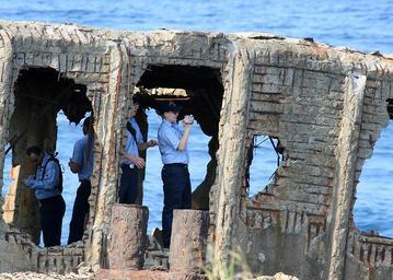| Keywords: US Navy 070313-N-9228S-004 A group of Sailors stationed aboard USS Harpers Ferry (LSD 49) visit the island of the historic Battle of Iwo Jima.jpg en IWO JIMA Japan March 13 2007 - A group of Sailors stationed aboard USS Harpers Ferry LSD 49 visit the island of the historic Battle of Iwo Jima Sailors and Marines learned about the history of the battle through war remnants and used the time on the island to honor fallen service members of both forces Harpers Ferry with embarked 1st Marine Aircraft Wing MAW are here to support the 62nd Commemoration of the Battle of Iwo Jima U S Navy photo by Mass Communication Specialist Seaman Aaron L Stevens RELEASED 2007-03-13 070313-N-9228S-004 Navy http //www navy mil/view_image asp id 43960 U S Navy photo by Mass Communication Specialist Seaman Aaron L Stevens PD-USGov-Military-Navy Images from US Navy location Iwo Jima Japan Aboard USS Harpers Ferry LSD-49 Concrete ship wrecks |