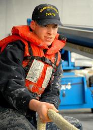 | Keywords: US Navy 070314-N-7981E-101 Seaman Ryan M. Wiuff, a member of Deck Department's paint team, heaves around a line while repositioning a painting barge underneath an elevator on the Nimitz-class aircraft carrier USS Abraham Lincol.jpg en BREMERTON Wash March 14 2007 - Seaman Ryan M Wiuff a member of Deck Department's paint team heaves around a line while repositioning a painting barge underneath an elevator on the Nimitz-class aircraft carrier USS Abraham Lincoln CVN-72 Since late August Sailors from Lincoln's Deck Department have applied haze-gray paint by hand to more than 250 000 square feet of the ship's hull and weather decks and black paint to an additional 20 000 square feet at the waterline Lincoln is currently wrapping up the last phase of its Dry-dock Planned Incremental Availability DPIA in which months of hard work from Sailors and civilians have successfully prepared the ship for its return to full operational capability U S Navy photo by Mass Communication Specialist 3rd Class James R Evans RELEASED 2007-03-14 070314-N-7981E-101 Navy http //www navy mil/view_image asp id 44046 U S Navy photo by Mass Communication Specialist 3rd Class James R Evans PD-USGov-Military-Navy Puget Sound Naval Shipyard in the 2000s Aboard USS Abraham Lincoln CVN-72 Males with life jackets |