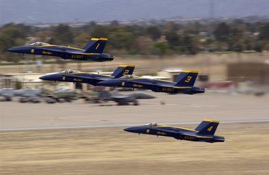 | Keywords: US Navy 070317-F-2788H-289 Four F-A-18 Hornet aircraft from the U.S. Navy Flight Demonstration Squadron Blue Angels fly in formation after taking off at Davis-Monthan Air Force Base, Ariz., during the Aerospace and Arizona Days.jpg en TUCSON ARIZ MARCH 17 2007 - Four F/A-18 Hornet aircraft from the U S Navy Flight Demonstration Squadron Blue Angels fly in formation after taking off at Davis-Monthan Air Force Base Ariz during the Aerospace and Arizona Days air show U S Air Force photo by Senior Airmen Jacqueline Hawkins RELEASED 2007-03-17 070317-F-2788H-289 Navy http //www navy mil/view_image asp id 44388 U S Navy photo PD-USGov-Military-Navy Blue Angels F/A-18 Hornet in 2007 Aircraft at Davis-Monthan Air Force Base |