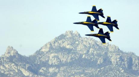 Keywords: US Navy 070318-F-2605S-037 Four F-A-18 Hornet aircraft from the U.S. Navy Flight Demonstration Squadron Blue Angels fly in formation after taking off at Davis-Monthan Air Force Base, Ariz., during the Aerospace and Arizona Days.jpg en TUCSON ARIZ MARCH 18 2007 - Four F/A-18 Hornet aircraft from the U S Navy Flight Demonstration Squadron Blue Angels fly in formation after taking off at Davis-Monthan Air Force Base Ariz during the Aerospace and Arizona Days air show U S Air Force photo by Senior Airmen Jacqueline Hawkins RELEASED 2007-03-18 070318-F-2605S-037 Navy http //www navy mil/view_image asp id 44390 U S Navy photo PD-USGov-Military-Navy Blue Angels F/A-18 Hornet in 2007 Davis-Monthan Air Force Base