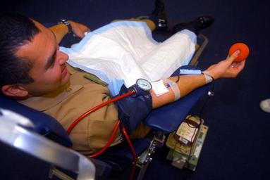 | Keywords: US Navy 070321-N-4776G-072 Chief Yeoman Rafael Villarreal, from San Antonio, rolls a foam ball in his hand promoting blood flow allowing him to fill a bag during a blood drive held on 32nd Street Naval Base.jpg en SAN DIEGO March 21 2007 - Chief Yeoman Rafael Villarreal from San Antonio rolls a foam ball in his hand promoting blood flow allowing him to fill a bag during a blood drive held on 32nd Street Naval Base Villarreal is a regular donor who says he believes it is important to give blood and keep the blood banks stocked for those who need it The bloodmobile travels around the San Diego area covering different locations U S Navy photo by Mass Communication Specialist Seaman Kathleen Gorby RELEASED 2007-03-21 070321-N-4776G-072 Navy http //www navy mil/view_image asp id 44248 U S Navy photo by Mass Communication Specialist Seaman Kathleen Gorby PD-USGov-Military-Navy Blood donation at Naval Base San Diego Yeoman United States Navy People donating blood in the United States |