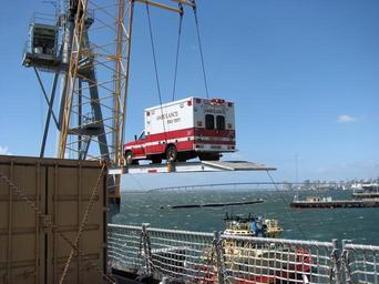 | Keywords: US Navy 070328-N-2328R-002 An ambulance is loaded aboard dock landing ship USS Pearl Harbor (LSD 52) prior to the ship^rsquo,s departure.jpg en SAN DIEGO March 28 2007 An ambulance is loaded aboard dock landing ship USS Pearl Harbor LSD 52 prior to the ship s departure The ambulance will be donated to the people of Las Parejas Argentina from Project Handclasp in support of Partnership of the Americas POA 2007 POA 2007 will focus on enhancing relationships with regional partner nations through a variety of exercises and events at sea and on shore throughout Latin America and the Caribbean U S Navy photo by Storekeeper 1st Class Marcus Rosales RELEASED 2007-03-28 070328-N-2328R-002 Navy http //www navy mil/view_image asp id 44675 U S Navy photo by Storekeeper 1st Class Marcus Rosales PD-USGov-Military-Navy Naval ship departures from Naval Base San Diego Aboard USS Pearl Harbor LSD-52 Ambulances in California Ford F-Series ambulances Lifting C-Tractor 10 ship 1994 Project Handclasp United States Navy |