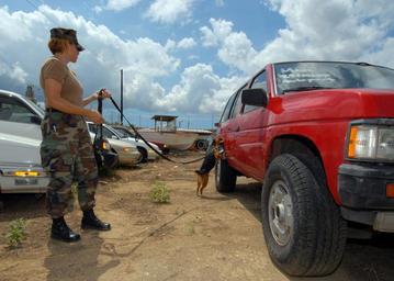 | Keywords: US Navy 070329-N-4965F-014 Master-At-Arms 1st Class Jinine Green and her military working dog, Malibu, a 2-year-old Jack Russell Terrier mixed breed, search for drugs during a training exercise on board Naval Station Pearl Harb.jpg en PEARL HARBOR Hawaii March 29 2007 - Master-At-Arms 1st Class Jinine Green and her military working dog Malibu a 2-year-old Jack Russell Terrier mixed breed search for drugs during a training exercise on board Naval Station Pearl Harbor NAVSTA PH Green and Malibu are both assigned to NAVSTA PH Security K-9 Division a specialized unit that provides regional security support for patrol explosive and drug detection U S Navy photo by Mass Communication Specialist 1st Class James E Foehl RELEASED 2007-03-29 070329-N-4965F-014 Navy http //www navy mil/view_image asp id 44605 U S Navy photo by Mass Communication Specialist 1st Class James E Foehl PD-USGov-Military-Navy 2007 in Pearl Harbor Images from US Navy location Pearl Harbor Hawaii Master-at-arms Military working dogs of the United States Dogs of Hawaii |