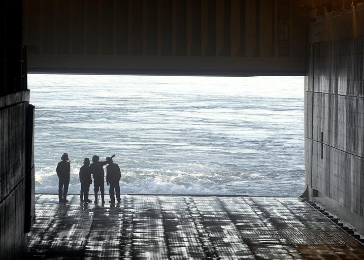 Keywords: US Navy 070403-N-4954I-166 Boatswain's Mates standby in the well deck as the stern gate of amphibious assault ship USS Peleliu (LHA 5) starts to close after a Landing Craft Air Cushion (LCAC) launches.jpg en PACIFIC OCEAN April 3 2007 - Boatswain's Mates standby in the well deck as the stern gate of amphibious assault ship USS Peleliu LHA 5 starts to close after a Landing Craft Air Cushion LCAC launches during operation off the coast of Southern California Peleliu is preparing for its upcoming humanitarian deployment in support of Pacific Partnership U S Navy photo by Mass Communication Specialist 3rd Class Bryan M Ilyankoff RELEASED 2007-04-03 070403-N-4954I-166 Navy http //www navy mil/view_image asp id 44777 U S Navy photo by Mass Communication Specialist 3rd Class Bryan M Ilyankoff PD-USGov-Military-Navy Aboard USS Peleliu LHA-5 Well decks |