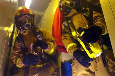 View Original:US_Navy_070404-N-7130B-187_A_firefighting_team_assigned_to_the_Nimitz-Class_aircraft_carrier_USS_Ronald_Reagan_(CVN_76)_Repair_Locker_Seven_Fox_(7F)_combats_a_simulated_fire_during_a_general_quarters_drill_aboard_the_ship.jpg (2464x1632)