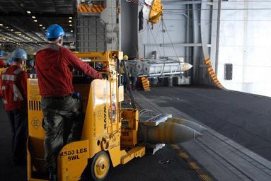 | Keywords: US Navy 070406-N-2959L-678 Weapons department personnel watch as ordnance is lifted by a sliding pad eye in the hanger bay of Nimitz-class aircraft carrier USS Ronald Reagan (CVN 76).jpg en SOUTH CHINA SEA April 6 2007 - Weapons department personnel watch as ordnance is lifted by a sliding pad eye in the hanger bay of Nimitz-class aircraft carrier USS Ronald Reagan CVN 76 Ronald Reagan Carrier Strike Group is underway in support of operations in the South China Sea U S Navy photo by Mass Communication Specialist 2nd Class Dominique M Lasco RELEASED 2007-04-06 070406-N-2959L-678 Navy http //www navy mil/view_image asp id 44881 U S Navy photo by Mass Communication Specialist 2nd Class Dominique M Lasco PD-USGov-Military-Navy Aboard USS Ronald Reagan CVN-76 |