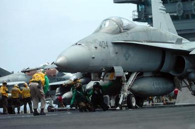 | Keywords: US Navy 070511-N-4420S-223 Chief Aviation Boatswain^rsquo,s Mate Equipment Andre Walton checks to make sure the launch bar is securely fastened on the catapult before signaling to launch the F-A-18C Hornet.jpg en INDIAN OCEAN May 11 2007 Chief Aviation Boatswain s Mate Equipment Andre Walton checks to make sure the launch bar is securely fastened on the catapult before signaling to launch the F/A-18C Hornet assigned to the Sunliners of Fighter Attack Squadron VFA 81 aboard the nuclear-powered aircraft carrier USS Nimitz CVN 68 The Nimitz Carrier Strike Group and embarked Carrier Air Wing CVW 11 are deployed in the U S 5th Fleet conducting Maritime Security Operations and supporting troops participation in Operation Enduring Freedom U S Navy photo by Mass Communication Specialist Seaman Apprentice John Scorza RELEASED 2007-05-11 070511-N-4420S-223 Navy http //www navy mil/view_image asp id 46081 U S Navy photo by Mass Communication Specialist Seaman Apprentice John Scorza PD-USGov-Military-Navy Aboard USS Nimitz CVN-68 Strike Fighter Squadron 81 United States Navy |
