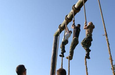| Keywords: US Navy 070515-N-1134L-001 Midshipmen from the Naval Academy tackle the ropes portion of an obstacle course during Sea Trials.jpg en ANNAPOLIS Md May 15 2007 Midshipmen from the Naval Academy tackle the ropes portion of an obstacle course during Sea Trials Sea Trials a 12-hour event modeled after the Marine Corps Crucible and the Navy s Battle Stations is the capstone event of the midshipmen s freshman year and is designed to test teamwork and motivation in a stressful environment Plebes must work together to successfully conquer a variety of challenges including damage control scenarios zodiac boat runs endurance courses log PT and riverine training U S Navy photo by Mass Communication Specialist Seaman Chris Lussier RELEASED 2007-05-15 070515-N-1134L-001 Navy http //www navy mil/view_image asp id 46164 U S Navy photo by Mass Communication Specialist Seaman Chris Lussier PD-USGov-Military-Navy Sea Trials Obstacle courses Women in the United States Navy |