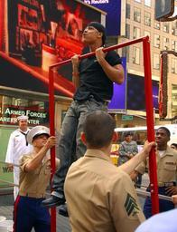 | Keywords: US Navy 070523-N-2984R-108 Military personnel assigned to U.S. Armed Forces Career Center on Times Square New York, watch as a New Yorker does pull-ups during an event where people from the city signed up to show off their phys.jpg en NEW YORK May 23 2007 - Military personnel assigned to U S Armed Forces Career Center on Times Square New York watch as a New Yorker does pull-ups during an event where people from the city signed up to show off their physical abilities The 20th annual Fleet Week New York is an opportunity for New Yorkers to meet Sailors Marines and Coast Guardsmen and thank them for their service Fleet Week honors the service and sacrifice of all Sailors Marines and Coast Guardsmen as well as the city of New York in the global war on terrorism U S Navy photo by Mass Communication Specialist 3rd Class Ricardo J Reyes RELEASED 2007-05-23 070523-N-2984R-108 Navy http //www navy mil/view_image asp id 46564 U S Navy photo by Mass Communication Specialist 3rd Class Ricardo J Reyes PD-USGov-Military-Navy Fleet Week New York 2007 Pull-ups |