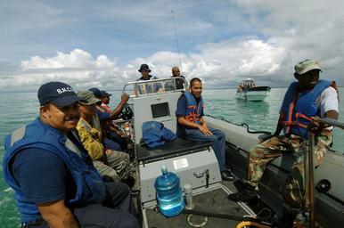 | Keywords: US Navy 070613-N-0989H-005 Chief Boatswain's Mate William Partington from the U.S. Coast Guard International Training Division conducts small boat operations subject matter exchanges with personnel from the Belize National Coas.jpg en BELIZE CITY Belize June 13 2007 - Chief Boatswain's Mate William Partington from the U S Coast Guard International Training Division conducts small boat operations subject matter exchanges with personnel from the Belize National Coast Guard Belize Defense Force and the Belize Police Force Task Group 40 9 is deployed as part of the pilot Global Fleet Station GFS to the Caribbean basin and Central America The mission is designed to validate the GFS concept for the Navy and support U S Southern Command objectives for its area of responsibility by enhancing cooperative partnerships with regional maritime services and improving operational readiness for the participating partner nations U S Navy photo by Mass Communication Specialist 1st Class David Hoffman RELEASED 2007-06-13 070613-N-0989H-005 Navy http //www navy mil/view_image asp id 47285 U S Navy photo by Mass Communication Specialist 1st Class David Hoffman PD-USGov-Military-Navy United States Navy in Belize City Belize Defense Force |