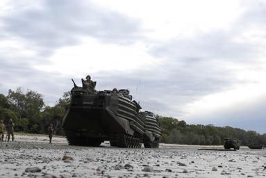 | Keywords: US Navy 070617-N-4207M-132 Marine Corps amphibious assault vehicles from the 3rd Marine Expeditionary Brigade, 31st Marine Expeditionary Unit, transit the beach during an amphibious landing rehearsal.jpg en SHOALWATER BAY TRAINING AREA Australia June 17 2007 - Marine Corps amphibious assault vehicles from the 3rd Marine Expeditionary Brigade 31st Marine Expeditionary Unit transit the beach during an amphibious landing rehearsal for Exercise Talisman Saber 2007 Talisman Saber is a U S and Australian led Joint Task Force exercise designed to prepare both nations for crisis action planning and the execution of contingency operations TS07 will maintain a high level of interoperability between U S and Australian forces demonstrating commitment to regional security and the U S and Australian military alliance U S Navy Mass Communication Specialist 3rd Class Jhoan Montolio RELEASED 2007-06-17 070617-N-4207M-132 Navy http //www navy mil/view_image asp id 47260 U S Navy photo PD-USGov-Military-Navy Images from US Navy location Shoalwater Bay Amphibious Assault Vehicle Talisman Sabre 2007 |