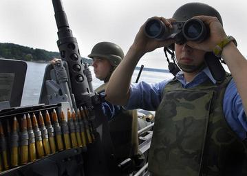 | Keywords: US Navy 070626-N-4166B-223 Sailors vigilantly peer at a surface contact while standing small arms attack team (SCAT) watch.jpg en BREMERTON Wash June 26 2007 - Sailors vigilantly peer at a surface contact while standing small arms attack team SCAT watch as Nimitz-class aircraft carrier USS Abraham Lincoln CVN 72 transits Puget Sound during her departure Lincoln is conducting sea trials following a nine-month dry-dock planned incremental availability at Puget Sound Naval Shipyard in Bremerton Wash Sea trials will test Lincoln s systems and crew in preparation for their return to full operational capability status U S Navy photo by Mass Communication Specialist 2nd Class Jordon R Beesley RELEASED 2007-06-26 070626-N-4166B-223 Navy http //www navy mil/view_image asp id 47682 U S Navy photo by Mass Communication Specialist 2nd Class Jordon R Beesley PD-USGov-Military-Navy Puget Sound Naval Shipyard in the 2000s Aboard USS Abraham Lincoln CVN-72 People with ammunition belts People with binoculars |