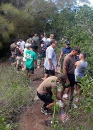 | Keywords: US Navy 070629-N-8506S-002 Members of SEAL Delivery Team (SDVT) 1 place a small American flag next to a Milo tree sapling during the annual Never Forget Hoolaukanaka in the Hawaii Kai area.jpg en OAHU Hawaii June 29 2007 - Members of SEAL Delivery Team SDVT 1 place a small American flag next to a Milo tree sapling during the annual Never Forget Hoolaukanaka in the Hawaii Kai area The Milo tree is one of five trees planted during last year's event to commemorate the lives of five Navy SEALs killed in action in Afghanistan in 2005 The SEALs were part of SDVT-1 based out of Pearl Harbor Hawaii The Milo tree a native tree to Hawaii is symbolic of the versatility of the Navy SEALs as it can thrive both near the ocean and in the high rocky mountains of the islands U S Navy photo by Aviation Aerographer's Mate 2nd Class Christopher Steele RELEASED 2007-06-29 070629-N-8506S-002 Navy http //www navy mil/view_image asp id 48038 U S Navy photo by Aviation Aerographer's Mate 2nd Class Christopher Steele PD-USGov-Military-Navy Marine Corps Base Hawaii United States Navy SEALs |