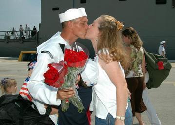 | Keywords: homecoming mayport uss underwood ussunderwood naval region southeast navalregionsoutheast fl conus usa outdoor 070702-N-1522S-100 MAYPORT, Fla. (July 2, 2007) - Boatswain's Mate 2nd Class John Acheson is greeted with a kiss by his wife, Victoria, during the homecoming of guided missile frigate USS Underwood (FFG-36). Underwood conducted more than 35 boardings in support of CTF 158 Operations in the Northern Arabian Gulf. U.S. Navy photo by Mass Communication Specialist 2nd Class Leah Stiles. Cleared for public release by FLTPACEN DET SE CPOIC, MCC Anthony C. Casullo. For additional information, contact FLTPACEN DET SE at COM 904-270-7762 or DSN 960-7762. 070702-N-1522S-100 MAYPORT, Fla. (July 2, 2007) - Boatswain's Mate 2nd Class John Acheson is greeted with a kiss by his wife, Victoria, during the homecoming of guided missile frigate USS Underwood (FFG-36). Underwood conducted more than 35 boardings in support of CTF 158 Operations in the Northern Arabian Gulf. U.S. Navy photo by Mass Communication Specialist 2nd Class Leah Stiles. Cleared for public release by FLTPACEN DET SE CPOIC, MCC Anthony C. Casullo. For additional information, contact FLTPACEN DET SE at COM 904-270-7762 or DSN 960-7762. 070702-N-1522S-100 MAYPORT, Fla. (July 2, 2007) - Boatswain's Mate 2nd Class John Acheson is greeted with a kiss by his wife, Victoria, during the homecoming of guided missile frigate USS Underwood (FFG-36). Underwood conducted more than 35 boardings in support of CTF 158 Operations in the Northern Arabian Gulf.
