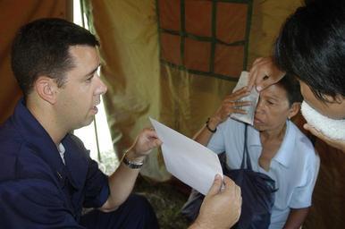 | Keywords: US Navy 070702-N-1752H-110 Cmdr. Matthew Behil performs a routine eye examination on a local patient during a medical civic affairs program (MEDCAP) held at Tabaco Elementary School.jpg en TABACO CITY Philippines July 2 2007 - Cmdr Matthew Behil performs a routine eye examination on a local patient during a medical civic affairs program MEDCAP held at Tabaco Elementary School The MEDCAP is being conducted throughout the region in support of Pacific Partnership 2007 a four-month humanitarian assistance mission to Southeast Asia and Oceania that will include specialized medical care and various construction and engineering projects The various civic action programs assist the Philippines in providing local communities with a wide range of services U S Navy photo by Mass Communication Specialist Seaman Patrick D House RELEASED 2007-07-02 070702-N-1752H-110 Navy http //www navy mil/view_image asp id 47846 U S Navy photo by Mass Communication Specialist Seaman Patrick D House PD-USGov-Military-Navy Tabaco City Inspection medicine |