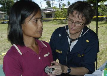 | Keywords: US Navy 070702-N-1752H-182 Cmdr. Cindy Tamminga performs a routine check up for a local patient during a medical civic affairs program (MEDCAP) held at Tabaco Elementary School.jpg en TABACO CITY Philippines July 2 2007 - Cmdr Cindy Tamminga performs a routine check up for a local patient during a medical civic affairs program MEDCAP held at Tabaco Elementary School The MEDCAP is being conducted throughout the region in support of Pacific Partnership 2007 a four-month humanitarian assistance mission to Southeast Asia and Oceania that includes specialized medical care and various construction and engineering projects The various civic action programs assist the Philippines in providing local communities with a wide range of services U S Navy photo by Mass Communication Specialist Seaman Patrick D House RELEASED 2007-07-02 070702-N-1752H-182 Navy http //www navy mil/view_image asp id 47847 U S Navy photo by Mass Communication Specialist Seaman Patrick D House PD-USGov-Military-Navy Tabaco City |