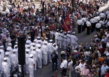 | Keywords: US Navy 070704-N-7869M-173 The color guard from multi-purpose amphibious assault ship USS Wasp (LHD 1) presents the colors while marching with other Sailors during the Flag Raising Ceremony and Parade at City Hall.jpg en BOSTON July 4 2007 The color guard from multi-purpose amphibious assault ship USS Wasp LHD 1 presents the colors while marching with other Sailors during the Flag Raising Ceremony and Parade at City Hall The parade began at City Hall and continued to Granary Burial Ground The Old State House and concluded at Faneuil Hall The color guard spent the day performing at different events throughout the Boston to celebrate Independence Day Wasp was in Boston for the annual Harborfest held during the week of Fourth of July U S Navy photo by Mass Communication Specialist 3rd Class Brian May RELEASED 2007-07-04 070704-N-7869M-173 Navy http //www navy mil/view_image asp id 48020 U S Navy photo by Mass Communication Specialist 3rd Class Brian May PD-USGov-Military-Navy Images from US Navy location BOSTON Aboard USS Wasp LHD-1 |