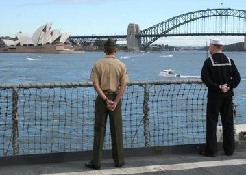 | Keywords: US Navy 070707-N-6710M-001 Sailors aboard dock landing ship USS Tortuga (LSD 46) and embarked Marines assigned to the 31st Marine Expeditionary Unit man the rails as the ship departs Australia.jpg en SYDNEY Australia July 7 2007 Sailors aboard dock landing ship USS Tortuga LSD 46 and embarked Marines assigned to the 31st Marine Expeditionary Unit man the rails as the ship departs Australia after a four-day port visit prior to the completion of Talisman Saber 2007 Tortuga serves under Commander Expeditionary Strike Group 7/Task Force 76 the Navy s only permanently forward-deployed amphibious force ESG 7/Task Force 76 is headquartered at White Beach Naval Facility Okinawa Japan with an operating detachment in Sasebo Japan U S Navy photo by Mass Communication Specialist Seaman Brandon Myrick RELEASED 2007-07-07 070707-N-6710M-001 Navy http //www navy mil/view_image asp id 48079 U S Navy photo by Mass Communication Specialist Seaman Brandon Myrick PD-USGov-Military-Navy Sydney Opera House remote views Aboard USS Tortuga LSD-46 Manning the rail in the United States Navy 2007 in Sydney Sydney Harbour Bridge remote views |