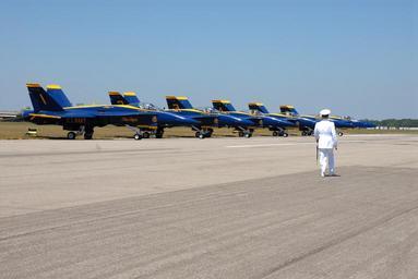 | Keywords: US Navy 070707-N-9909C-005 Lt. Brandon Worl walks the flight line in front of the Blue Angels at the start of the performance by the U.S. Navy Ceremonial Guard.jpg en DETROIT July 7 2007 - Lt Brandon Worl walks the flight line in front of the Blue Angels at the start of the performance by the U S Navy Ceremonial Guard The performance was a featured event at the Ninth Annual Thunder Over Michigan Air Show at Willow Run Airport The Navy had all the bases covered at the air show with the ceremonial guard on the ground the Blue Angels flying in the blue skies above and a SEAL motivation team in the crowd To top it off Navy Recruiting District Michigan had dozens of Sailors staffing a Navy Recruiting tent next to the Navy flight simulator The air show also featured one of the largest gatherings of vintage aircraft including 15 B-25 Mitchell bombers that flew in formation prior to the Blues Angels flight demonstration U S Navy photo by Cmdr Jane Campbell RELEASED 2007-07-07 070707-N-9909C-005 Navy http //www navy mil/view_image asp id 48094 U S Navy photo by Cmdr Jane Campbell PD-USGov-Military-Navy Thunder Over Michigan Blue Angels F/A-18 Hornet in 2007 Willow Run Airport |