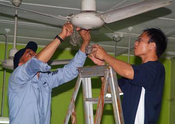 | Keywords: US Navy 070719-N-0120A-042 Dock landing ship USS Harpers Ferry (LSD 49) Sailor and a Singapore navy sailor work together cleaning fans at a Movement for the Intellectually Disabled of Singapore (MINDS) training and development.jpg en SINGAPORE July 19 2007 - Dock landing ship USS Harpers Ferry LSD 49 Sailor and a Singapore navy sailor work together cleaning fans at a Movement for the Intellectually Disabled of Singapore MINDS training and development center This community interaction project is part of the Singapore stage of Cooperation Afloat Readiness and Training CARAT 2007 CARAT is an annual series of bilateral maritime training exercises between the United States and six Southeast Asia nations designed to build relationships and enhance the operational readiness of the participating forces Harpers Ferry is the flagship for CARAT 2007 with Commander Destroyer Squadron 1 embarked aboard U S Navy photo by Mass Communication Specialist 3rd Class Mark R Alvarez RELEASED 2007-07-19 070719-N-0120A-042 Navy http //www navy mil/view_image asp id 48536 U S Navy photo by Mass Communication Specialist 3rd Class Mark R Alvarez PD-USGov-Military-Navy Naval ships of the United States in Singapore Aboard USS Harpers Ferry LSD-49 |