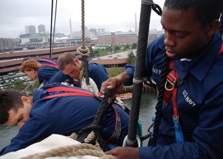 Keywords: US Navy 070723-N-2893B-001 Working with other USS Constitution Sailors on the ship^rsquo,s mizzenmast, Seaman Apprentice Tyrell Mackey ties a gasket to secure the topsail to the starboard yard.jpg en BOSTON July 23 2007 Working with other USS Constitution Sailors on the ship s mizzenmast Seaman Apprentice Tyrell Mackey ties a gasket to secure the topsail to the starboard yard Sailors aboard Old Ironsides conduct sail training twice a week in preparation for two underway demonstrations scheduled for late August At 209 years old USS Constitution is the oldest commissioned warship afloat in the world She is manned by 64 active duty Sailors and visited by nearly half a million tourists annually U S Navy photo by Mass Communication Specialist 1st Class Eric Brown RELEASED 2007-07-23 070723-N-2893B-001 Navy http //www navy mil/view_image asp id 48672 U S Navy photo by Mass Communication Specialist 1st Class Eric Brown PD-USGov-Military-Navy Images from US Navy location BOSTON Military people on duty Gaskets Sailors from the United States Navy Male red hair USS Constitution in 21st century Sailors aloft African American sailors |