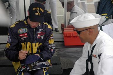 | Keywords: US Navy 070728-N-3705H-186 Navy NASCAR team driver, Brad Keselowski, signs an autograph for a Sailor assigned to Nimitz-Class aircraft carrier USS Carl Vinson (CVN 70) during a meet-and-greet session before the Kroger 200 Busch.jpg en INDIANAPOLIS July 28 2007 - Navy NASCAR team driver Brad Keselowski signs an autograph for a Sailor assigned to Nimitz-class aircraft carrier USS Carl Vinson CVN 70 during a meet-and-greet session before the Kroger 200 Busch Series race at O'Reilly Raceway Park Seven Vinson Sailors attended the race to cheer on the No 88 Navy Chevy Monte Carlo U S Navy photo by Mass Communication Specialist Nina Hughes RELEASED 2007-07-28 070728-N-3705H-186 Navy http //www navy mil/view_image asp id 48840 U S Navy photo by Mass Communication Specialist Nina Hughes PD-USGov-Military-Navy 2007 in Indiana O'Reilly Raceway Park Aboard USS Carl Vinson CVN-70 Brad Keselowski in 2007 Military in Indianapolis |