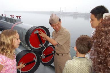 | Keywords: US Navy 070729-N-0021M-004 A sailor aboard Korean destroyer ROKS Ulchimoonduk (DDG 972), the Republic of Korea^rsquo,s (ROK) 2nd Fleet Flagship, describes the anti-submarine capabilities of the MK-44 torpedo to Sailors and fami.jpg en PYEONGTAEK Republic of Korea July 29 2007 - A sailor aboard Korean destroyer ROKS Ulchimoonduk DDG 972 the Republic of Korea s ROK 2nd Fleet Flagship describes the anti-submarine capabilities of the MK-44 torpedo to Sailors and family members from Commander U S Naval Forces Korea The ship visit was part of a two-day ROK-U S team-building event intended to build unity friendship and camaraderie between the two navies U S Navy photo by Mass Communication Specialist 1st Class Todd Macdonald RELEASED 2007-07-29 070729-N-0021M-004 Navy http //www navy mil/view_image asp id 48847 U S Navy photo by Mass Communication Specialist 1st Class Todd Macdonald PD-USGov-Military-Navy Images from US Navy location Pyeongtaek Republic of Korea ROKS Euljimundok DDH 972 Mark 32 Surface Vessel Torpedo Tubes Republic of Korea Navy 2nd Fleet Sailors of the Republic of Korea Navy |