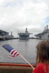 | Keywords: US Navy 070730-N-7987H-236 A little girl waves the American flag as amphibious assault ship USS Kearsarge (LHD 3) pulls away from Naval Station Norfolk.jpg en NORFOLK Va July 30 2007 - A little girl waves the American flag as amphibious assault ship USS Kearsarge LHD 3 pulls away from Naval Station Norfolk The Kearsarge Expeditionary Strike Group and 22nd Marine Expeditionary Unit MEU deployed to conduct maritime operations in support of the ongoing rotation of forward-deployed forces U S Navy photo by Mass Communication Specialist Seaman Mandy Hunsucker RELEASED 2007-07-30 070730-N-7987H-236 Navy http //www navy mil/view_image asp id 48865 U S Navy photo by Mass Communication Specialist Seaman Mandy Hunsucker PD-USGov-Military-Navy Naval Station Norfolk Aboard USS Kearsarge LHD-3 |