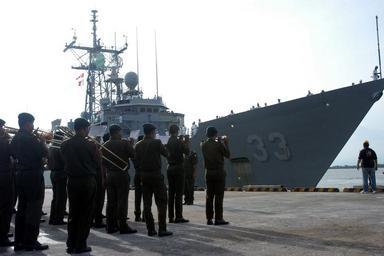 | Keywords: US Navy 070803-N-7706C-001 The Royal Brunei Armed Forces Band welcomes the guided-missile frigate USS Jarrett (FFG 33), as the ship arrives in port.jpg en MUARA Brunei Aug 3 2007 - The Royal Brunei Armed Forces Band welcomes the guided-missile frigate USS Jarrett FFG 33 as the ship arrives in port The ship came as part of Cooperation Afloat Readiness and Training CARAT 2007 CARAT is an annual series of bilateral maritime training exercises between the United States and six Southeast Asia nations designed to build relationships and enhance the operational readiness of the participating forces U S Navy photo by Mass Communication Specialist 1st Class Scott Comstock RELEASED 2007-08-03 070803-N-7706C-001 Navy http //www navy mil/view_image asp id 48993 U S Navy photo by Mass Communication Specialist 1st Class Scott Comstock PD-USGov-Military-Navy Military of Brunei USS Jarrett FFG-33 Cooperation Afloat Readiness and Training 2007 Military music |