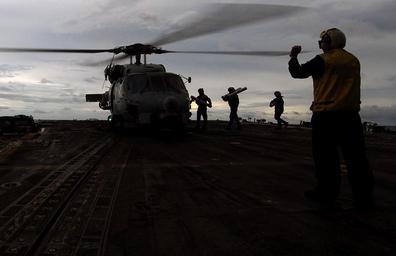 | Keywords: US Navy 070812-N-0684R-071 Landing signal enlisted Boatswain's Mate 1st Class Jared Klevis directs squadron personnel to load sonobouys on an SH-60B Seahawk assigned to the Wolfpack of Helicopter Anti-Submarine Squadron Light (.jpg en PACIFIC OCEAN Aug 12 2007 - Landing signal enlisted Boatswain's Mate 1st Class Jared Klevis directs squadron personnel to load sonobouys on an SH-60B Seahawk assigned to the Wolfpack of Helicopter Anti-Submarine Squadron Light HSL 45 as it sits on the flight deck aboard the guided-missile destroyer USS Preble DDG 88 Preble is part of the John C Stennis Carrier Strike Group The John C Stennis Kitty Hawk and Nimitz Carrier Strike Groups are participating in Valiant Shield 2007 the largest joint exercise in recent history Held in the Guam operating area the exercise includes 30 ships more than 280 aircraft and more than 20 000 service members from the Navy Air Force Marine Corps and Coast Guard U S Navy photo by Mass Communication Specialist 2nd Class Ron Reeves RELEASED 2007-08-12 070812-N-0684R-071 Navy http //www navy mil/view_image asp id 49495 U S Navy photo by Mass Communication Specialist 2nd Class Ron Reeves PD-USGov-Military-Navy Aboard USS Preble DDG-88 |