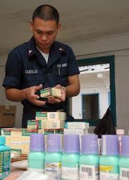 | Keywords: US Navy 070821-N-1467K-020 Hospital Corpsman 2nd Class Ronald Castillo sorts through medicine during a medical civic action program at the Tafunsak government building in support of Pacific Partnership.jpg en TAFUNSAK Kosrae Aug 21 2007 - Hospital Corpsman 2nd Class Ronald Castillo sorts through medicine during a medical civic action program at the Tafunsak government building in support of Pacific Partnership The Pacific Partnership mission is a four-month humanitarian assistance to areas in Southeastern Asia and Oceania U S Navy photo by Mass Communication Specialist 2nd Class Nathaniel J Karl RELEASED 2007-08-21 070821-N-1467K-020 Navy http //www navy mil/view_image asp id 50146 U S Navy photo by Mass Communication Specialist 2nd Class Nathaniel J Karl PD-USGov-Military-Navy Images from US Navy location TAFUNSAK Kosrae |