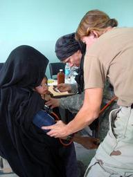 | Keywords: US Navy 070822-F-8346E-002 U.S. Air Force Maj. Debra Roberts, center, and U.S. Navy Lt. Karen Nordine check vital signs on an Afghan woman and her child during a village medical outreach in Shinkay District.jpg en ZABUL Afghanistan Aug 22 2007 - U S Air Force Maj Debra Roberts center and U S Navy Lt Karen Nordine check vital signs on an Afghan woman and her child during a village medical outreach in Shinkay District U S Air Force photo by Capt Bob Everdeen RELEASED 2007-08-22 070822-F-8346E-002 Navy http //www navy mil/view_image asp id 49981 U S Navy photo PD-USGov-Military-Navy Images from US Navy location Zabul Province Afghanistan |