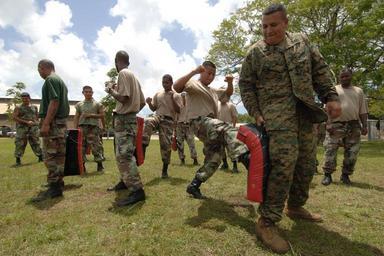 | Keywords: US Navy 070828-N-0989H-027 Marine Corps Staff Sgt. Oscar Cruz, assigned to a U.S. Marine Corps mobile training team, assists recruits of the Belize Defense Force on martial arts pad drills and unarmed manipulations during small.jpg en BELIZE CITY Belize Aug 28 2007 Marine Corps Staff Sgt Oscar Cruz assigned to a U S Marine Corps mobile training team assists recruits of the Belize Defense Force on martial arts pad drills and unarmed manipulations during small unit tactics training at the Price Barracks Task Group 40 9 is deployed under the operational control of U S Naval Forces Southern Command NAVSO for the Global Fleet Station GFS pilot deployment to the Caribbean Basin and Central America This deployment is designed to validate the GFS concept for the Navy and support NAVSO objectives for its area of responsibility by enhancing cooperative partnerships with regional maritime services and improving operational readiness for the participating partner nations U S Navy photo by Mass Communication Specialist 1st Class David Hoffman RELEASED 2007-08-28 070828-N-0989H-027 Navy http //www navy mil/view_image asp id 50158 U S Navy photo by Mass Communication Specialist 1st Class David Hoffman PD-USGov-Military-Navy United States Navy in Belize City Belize Defense Force |