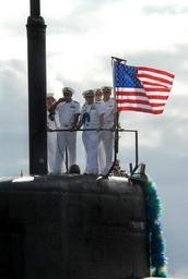 | Keywords: US Navy 070828-N-5476H-010 Sailors aboard Los Angeles-class attack submarine USS Key West (SSN 722) man the bridge while pulling into the pier at Naval Station Pearl Harbor.jpg en PEARL HARBOR Hawaii Aug 28 2007 Sailors aboard Los Angeles-class attack submarine USS Key West SSN 722 man the bridge while pulling into the pier at Naval Station Pearl Harbor Key West returned to her homeport after successfully completing a seven-month deployment to the Western Pacific promoting international relations and supporting the global war on terrorism U S Navy photo by Mass Communication Specialist 2nd Class Michael Hight RELEASED 2007-08-28 070828-N-5476H-010 Navy http //www navy mil/view_image asp id 50163 U S Navy photo by Mass Communication Specialist 2nd Class Michael Hight PD-USGov-Military-Navy 2007 in Pearl Harbor Images from US Navy location Pearl Harbor Hawaii USS Key West SSN-722 Submarine sails Military people with a flag of the United States USS Key West SSN-722 at Pearl Harbor |