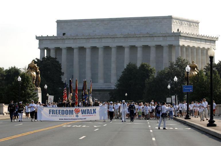 Keywords: US Navy 070909-N-3642E-139 The America Supports You banner leads National Freedom Walk participants onto the Memorial Bridge toward Arlington, Va.jpg en WASHINGTON Sept 9 2007 - The America Supports You banner leads National Freedom Walk participants onto the Memorial Bridge toward Arlington Va The third annual walk commemorated the victims of the Sept 11th terrorist attack and honored military veterans past and present U S Navy photo by Chief Mass Communication Specialist Shawn P Eklund RELEASED 2007-09-09 070909-N-3642E-139 Navy http //www navy mil/view_image asp id 50720 U S Navy photo by Chief Mass Communication Specialist Shawn P Eklund PD-USGov-Military-Navy Arlington Memorial Bridge America Supports You Sixth anniversary of the September 11 2001 attacks |