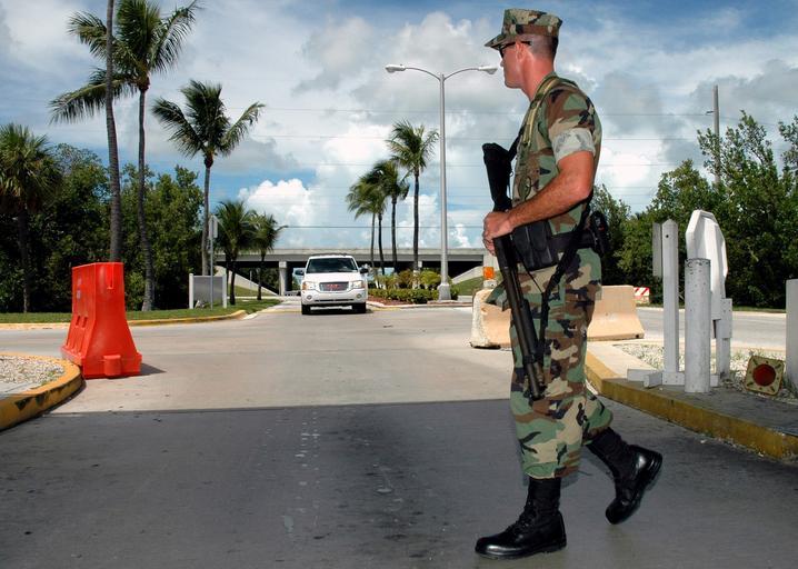 | Keywords: US Navy 070913-N-5240C-033 Master-at-Arms 3rd Class Justin Chance, attached to Naval Air Station (NAS) Key West's Security Department, mans the entry-control point at the air station.jpg en KEY WEST Fla Sept 13 2007 - Master-at-Arms 3rd Class Justin Chance attached to Naval Air Station NAS Key West's Security Department mans the entry-control point at the air station NAS Key West Sailors are scheduled to participate in the weeklong exercise Solid Curtain 2007 starting Sept 14 which will test the readiness of security personnel through real-world threat scenarios and improvised drills U S Navy photo by Mass Communication Specialist 2nd Class Timothy Cox RELEASED 2007-09-13 070913-N-5240C-033 Navy http //www navy mil/view_image asp id 50880 U S Navy photo by Mass Communication Specialist 2nd Class Timothy Cox PD-USGov-Military-Navy Naval Air Station Key West Master-at-arms Males with shotguns |