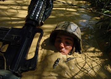 | Keywords: US Navy 070927-N-4267W-154 A Seabee with Naval Mobile Construction Battalion (NMCB) 7 negotiates through a mud filled trench during a jungle warfare training evolution hosted by Marines with the Jungle Warfare Training Command.jpg en OKINAWA Japan 27 Sept 2007 - A Seabee with Naval Mobile Construction Battalion NMCB 7 negotiates through a mud filled trench during a jungle warfare training evolution hosted by Marines with the Jungle Warfare Training Command JWTC The JWTC endurance course tests the Seabees' will stamina and the ability to work together as a team NMCB-7 is deployed to the Far East to provide construction support to shore installations in support of the global war on terrorism U S Navy photo by Mass Communication Specialist 2nd Class Paul D Williams RELEASED 2007-09-27 070927-N-4267W-154 Navy http //www navy mil/view_image asp id 51336 U S Navy photo by Mass Communication Specialist 2nd Class Paul D Williams PD-USGov-Military-Navy Camp Gonsalves Males with M16 rifle |