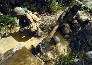 | Keywords: US Navy 070927-N-4267W-162 Seabees with Naval Mobile Construction Battalion (NMCB) 7 work together to exit a mud-filled trench during a jungle warfare training evolution hosted by Marines with the Jungle Warfare Training Comman.jpg en OKINAWA Japan Sept 27 2007 - Seabees with Naval Mobile Construction Battalion NMCB 7 work together to exit a mud-filled trench during a jungle warfare training evolution hosted by Marines with the Jungle Warfare Training Command JWTC The JWTC endurance course tests the Seabees will stamina and the ability to work together as a team NMCB-7 is deployed to the Far East to provide construction support to shore installations in support of the global war on terrorism U S Navy photo by Mass Communication Specialist 2nd Class Paul D Williams RELEASED 2007-09-27 070927-N-4267W-162 Navy http //www navy mil/view_image asp id 51317 U S Navy photo by Mass Communication Specialist 2nd Class Paul D Williams PD-USGov-Military-Navy Camp Gonsalves |