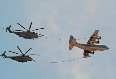 | Keywords: US Navy 071014-N-0066L-030 A C-130 Hercules provides simultaneous in-flight refueling to two CH-53E Super Stallions during the Miramar air show.jpg en MIRAMAR Calif Oct 14 2007 - A C-130 Hercules provides simultaneous in-flight refueling to two CH-53E Super Stallions during the Miramar air show Each of Hercules two fuel pods can transfer up to 300 gallons per minute during in-flight refueling The 2007 Miramar Air Show focused on the joint power of military aviation by bringing Navy Marine Corps Air Force and Army assets together in one of the largest military air shows in the country U S Navy photo by Mass Communication Specialist 1st Class George Labidou RELEASED 2007-10-14 071014-N-0066L-030 Navy http //www navy mil/view_image asp id 51819 U S Navy photo by Mass Communication Specialist 1st Class George Labidou PD-USGov-Military-Navy 2007 Miramar Air Show Sikorsky CH-53E Super Stallion Aerial refueling of helicopters KC-130J Hercules United States Navy/Marine Corps |