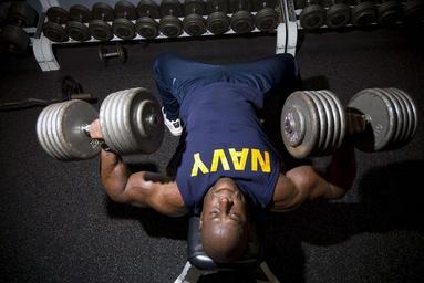 | Keywords: US Navy 071017-N-0995C-008 Chief Mineman Kevin Sperling, an officer recruiter at Navy Recruiting Processing Station Honolulu, presses two 105-pound dumbbells.jpg en PEARL HARBOR Hawaii Oct 17 2007 - Chief Mineman Kevin Sperling an officer recruiter at Navy Recruiting Processing Station Honolulu presses two 105-pound dumbbells to exercise his chest during a workout in Bloch Arena Gym at Naval Station Pearl Harbor Sperling has been in the sport of bodybuilding for the past 10 years and was proclaimed Mr Hawaii in the 29th Hawaiian Islands Bodybuilding and Figure Championships held June 30 Most recently he garnered a 10th place finish in the U S A Body Building Championship held in Las Vegas July 27-28 U S Navy photo by Mass Communication Specialist 3rd Class Eric J Cutright RELEASED 2007-10-17 071017-N-0995C-008 Navy http //www navy mil/view_image asp id 52400 U S Navy photo by Mass Communication Specialist 3rd Class Eric J Cutright PD-USGov-Military-Navy 2007 in Pearl Harbor Images from US Navy location Pearl Harbor Hawaii Mineman |