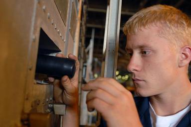 | Keywords: US Navy 071019-N-0913B-030 Hull Maintenance Technician Fireman Thomas Ohara inspects a Halon system on a Landing Craft Air Cushion (LCAC) during a maintenance cycle.jpg en PACIFIC OCEAN Oct 19 2007 - Hull Maintenance Technician Fireman Thomas Ohara inspects a Halon system on a Landing Craft Air Cushion LCAC during a maintenance cycle aboard the amphibious assault ship USS Essex LHD 2 Essex is the only forward-deployed amphibious assault ship and serves Task Force 76 the Navy's only forward-deployed amphibious force U S Navy photo by Mass Communication Specialist Seaman Andrew Brantley RELEASED 2007-10-19 071019-N-0913B-030 Navy http //www navy mil/view_image asp id 51934 U S Navy photo by Mass Communication Specialist Seaman Andrew Brantley PD-USGov-Military-Navy Landing Craft Air Cushion Aboard USS Essex LHD-2 Hull Maintenance Technician United States Navy |