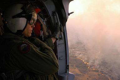 | Keywords: US Navy 071023-N-3069F-001 Chief Aviation Electronics Technician Rexford Sackett, assigned to Helicopter Sea Combat Squadron (HSC) 85, looks upon miles of burnt terrain as he and other Sailors prepare to help fend off the blaze.jpg en SAN DIEGO Oct 23 2007 - Chief Aviation Electronics Technician Rexford Sackett assigned to Helicopter Sea Combat Squadron HSC 85 looks upon miles of burnt terrain as he and other Sailors prepare to help fend off the blaze aboard an MH-60S Seahawk HSC-85 is providing helicopters specially equipped with a 420-gallon extinguishing trough used to dump water on San Diego's ongoing fire disaster The blaze has already forced more than 250 000 people from their homes U S Navy photo by Mass Communication Specialist 2nd Class Chris Fahey RELEASED 2007-10-23 071023-N-3069F-001 Navy http //www navy mil/view_image asp id 52035 U S Navy photo by Mass Communication Specialist 2nd Class Chris Fahey PD-USGov-Military-Navy Helicopter Sea Combat Squadron 85 United States Navy Helicopters fighting California wildfires of October 2007 |