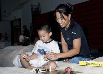 | Keywords: US Navy 071023-N-4658L-033 Mother and son play chess at the Naval Base San Diego Adm. James G. Prout Field House after evacuating their home in Otay Mesa to avoid the wildfires.jpg en SAN DIEGO Oct 23 2007 - Mother and son play chess at the Naval Base San Diego Adm James G Prout Field House after evacuating their home in Otay Mesa to avoid the wildfires More than a quarter-million people were urged to flee their homes across Southern California as wildfires blown by fierce desert winds raced over the landscape with terrifying speed destroying hundreds of structures clogging highways sending smoke and ash over a wide area The numerous fires in San Diego County pose no threats to Navy facilities in the area The Navy is working with various agencies to aide in combating the fires and providing assistance to both military and civilians U S Navy photo by Mass Communication 2nd Class Mark A Leonesio RELEASED 2007-10-23 071023-N-4658L-033 Navy http //www navy mil/view_image asp id 52086 U S Navy photo by Mass Communication 2nd Class Mark A Leonesio PD-USGov-Military-Navy Naval Base San Diego assistance during California wildfires of October 2007 Children playing chess Chess in the United States |