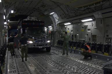 | Keywords: US Navy 071024-N-8732S-055 An Air Force C-17 Globemaster III attached to the 452nd Air Mobility Wing stationed on board March Air Reserve Base, unloads members and equipment from the 5th Army Operational Command Post Two.jpg en RIVERSIDE Calif Oct 24 2007 - An Air Force C-17 Globemaster III attached to the 452nd Air Mobility Wing stationed on board March Air Reserve Base unloads members and equipment from the 5th Army Operational Command Post Two out of San Antonio Texas as part of a federal support package used to assist federal state and local agencies responding to the California wildfires U S Navy photo by Chief Mass Communication Specialist Michael A Strand RELEASED 2007-10-24 071024-N-8732S-055 Navy http //www navy mil/view_image asp id 52170 U S Navy photo by Chief Mass Communication Specialist Michael A Strand PD-USGov-Military-Navy Images from US Navy location RIVERSIDE Calif 2007 Wildfires in California Transport of vehicles by Boeing C-17 Globemaster III Transport of trucks by aircraft International DuraStar |