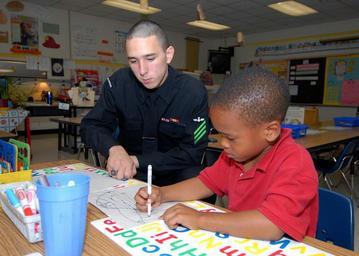| Keywords: US Navy 071025-N-5658B-002 Aviation Ordinanceman Airman Peter Grocut, assigned aboard the Precommissioning Unit (PCU) George H. W. Bush (CVN 77), helps a kindergartener at Newsome Park Elementary School with a drawing and writi.jpg en NEWPORT NEWS Va Oct 25 2007 - Aviation Ordnanceman Airman Peter Grocut assigned aboard the Precommissioning Unit PCU George H W Bush CVN 77 helps a kindergartener at Newsome Park Elementary School with a drawing and writing exercise PCU Bush has partnered with Newsome Park Elementary School under the Adopt-a-School program which involves Sailors in playing an intricate part in the students' education through mentoring teaching and reading to the children U S Navy photo by Mass Communication Specialist 3rd Class Nathan A Bailey RELEASED 2007-10-25 071025-N-5658B-002 Navy http //www navy mil/view_image asp id 52206 U S Navy photo by Mass Communication Specialist 3rd Class Nathan A Bailey PD-USGov-Military-Navy Images from US Navy location Newport News Virginia |
