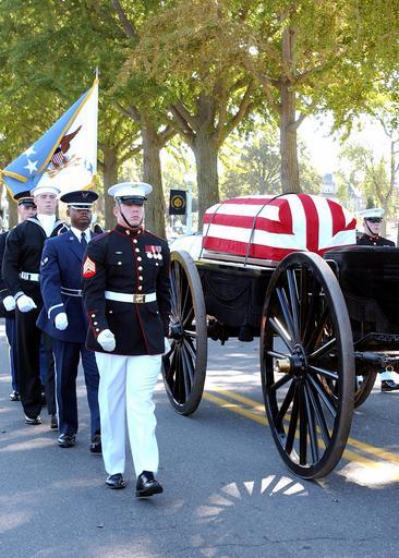 Keywords: US Navy 071031-N-5215E-036 Pallbearers escort the caisson during funeral procession for former Chairman of the Joint Chiefs of Staff, Adm. William J. Crowe, at the U.S. Naval Academy Cemetery.jpg en ANNAPOLIS Md Oct 31 2007 - Pallbearers escort the caisson during funeral procession for former Chairman of the Joint Chiefs of Staff Adm William J Crowe at the U S Naval Academy Cemetery Crowe who died Oct 18 at the age of 82 was buried alongside his friend and classmate Vice Adm James B Stockdale Chairman of the Joint Chiefs of Staff Adm Michael G Mullen and former President William Clinton spoke at Crowe's service in the Naval Academy Chapel U S Navy photo by Mass Communication Specialist Seaman Matthew A Ebarb RELEASED 2007-10-31 071031-N-5215E-036 Navy http //www navy mil/view_image asp id 52347 U S Navy photo by Mass Communication Specialist Seaman Matthew A Ebarb PD-USGov-Military-Navy United States Naval Academy Cemetery William J Crowe Jr Personal flags of the United States Department of Defense |